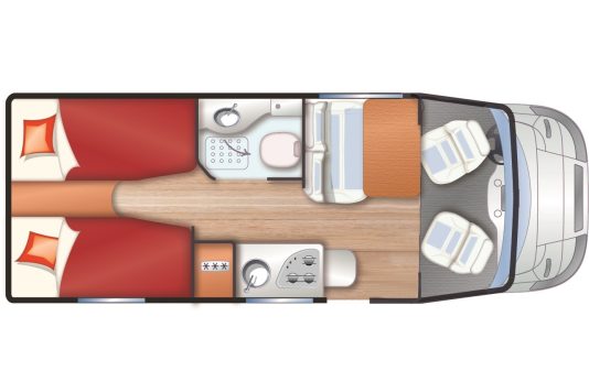 • Options : antenne satellite Oyster (3010 €), Smart TV 27” (1068 €), sellerie Active Rock (427 €), pack Energy Basic avec panneau de commande tactile (fonctionnement intuitif), chargeur de batterie intelligent avec taux de charge de 25A (585 €).