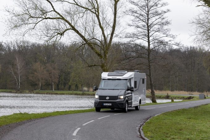 Avec son Knaus Van TI 640 MEG Vansation, le constructeur allemand cherche donc à se démarquer sur un marché fortement concurrentiel. Pour y parvenir, la marque opte donc pour un porteur encore peu utilisé sur le secteur en dehors de quelques fourgons. En effet, le Volkswagen Crafter reste extrêmement rare en matière de profilés. Un manque que vient donc combler Knaus avec le véhicule de l'essai. D'un point de vue gabarit, on a affaire ici à un modèle de 6,89 m de longueur, 2,20 m de largeur et 2,82 m de hauteur. Un format relativement compact dans les faits, mais il faudra tout de même se méfier du porte-à-faux arrière de 2,20 m, conséquence d'un empattement de seulement 3,64 m.