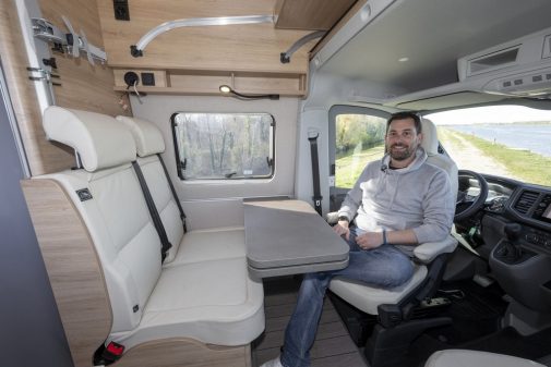 En revanche, Knaus innove avec une table sans pied et pourvu néanmoins d'une rallonge. Cette absence permet de glisser les genoux sans aucune gêne, un atout non négligeable. De plus, le plateau de table peut être totalement rabattu contre la paroi pour libérer davantage l'espace.
