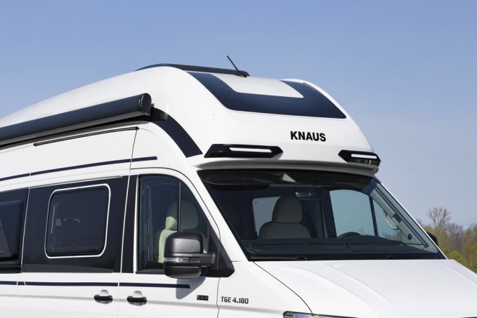 Nous le disions également, ce fourgon étonne par son appendice en pavillon. Ce véhicule au format pourtant court (5,98 m de longueur) a décidé d'optimiser l'espace par le haut avec un véhicule culminant à 3,09 m tout de même. Knaus a réussi malgré tout à faire de cette rehausse, un élément de design qui s'intègre parfaitement à la ligne du véhicule.