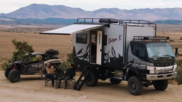 Hunter RMV est spécialisé dans la fabrication de camping-car tout-terrain et sur mesure pour des expéditions. L’entreprise basée dans le Nevada, aux Etats-Unis, propose également des véhicules de série depuis sa création en 2015. En juin, la marque a présenté le Sherpa X, un véhicule visant à démocratiser sa marque, mais à partir de 175 000 € tout de même. Un prix moins élevé que les autres véhicules de la marque, en moyenne affichés entre 395 000 € et 450 000 €.