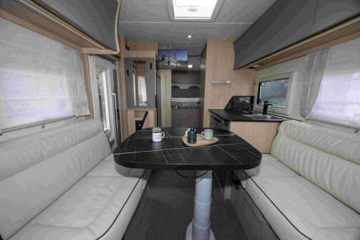 Plus qu’un nouveau profilé intégrant la gamme Privilège, le P740LC participe à rajeunir Auotostar. Ce profilé sur Fiat Ducato est doté d’un double plancher technique de 15 cm qui permet, outre le fait d’améliorer l’isolation de la cellule et de placer hors gel les faisceaux de câbles et le réseau de plomberie, de créer une surface totalement plane à l’intérieur, de la cabine jusqu’à la chambre.