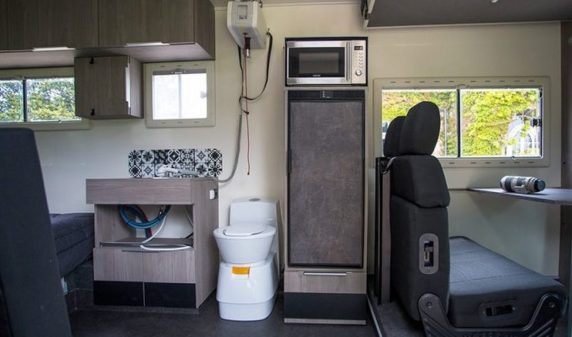 Les camping-cars sont créés sur-mesure dans l’Aveyron pour les personnes en situation de handicap moteur. Ainsi, tout est adapté, c’est-à-dire la salle de bain, la cuisine, la chambre… On y trouve un hayon élévateur électrique pour accéder au véhicule, mais également un rail de transfert. L’accès se fait donc par une porte latérale coulissante qui s’ouvre à l’aide de la clé du véhicule.