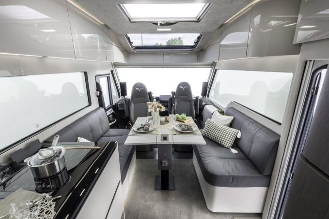 Mobilvetta Design renoue avec son passé de constructeur innovant. Au salon du camping-car de Düsseldorf, le constructeur italien a exposé un concept d'intégral, le FLUIDeen, bardé d'astuces en tout genre qui pourront être reprises par des véhicules de la marque dans un proche avenir. Fermeture centralisée des placards par électro-aimant, mobilier épuré, luminothérapie, amélioration de l'autonomie, rétroviseurs extérieurs remplacés par un système de caméras et d'écrans, utilisation des WC Thethford Indus...