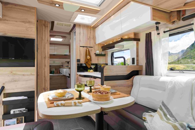 Pour réduire la longueur, Le Voyageur est intervenu au niveau du salon. Celui-ci est donc plus compact que sur celui des longs modèles. Toutefois, cinq personnes peuvent s’y tenir sans qu’elles aient besoin de jouer des coudes.