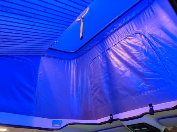 Mais la grande évolution, voire Révolution (n'ayons pas peur des mots) est surtout logée en pavillon. Le constructeur est fier d’avoir développé un toit relevable spécifique répondant aux attentes des usagers. Jugé souvent trop dur à manipuler, l’aménageur a revu ses systèmes de vérins afin de pouvoir libérer le toit sans effort. Pour refermer, la marque propose une solution inédite. En abaissant le toit, le dispositif profite d’une sécurité qui maintient le pavillon entrouvert et permet ainsi de rabattre la toile... avec les deux mains et sans contraintes. C’est une petite révolution sur le secteur mais à utiliser, ce toit « made in Glénan » est une réussite.