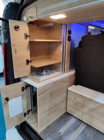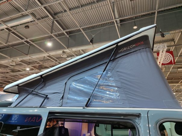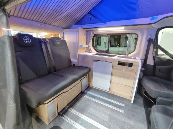 Et cela commence donc par une évolution sur le nombre de places assises. En effet, sur la nouveauté présentée au SVDL cette année, la banquette sur rail initialement trois places est remplacée par une assise pour deux personnes moins large. L’objectif est ainsi de loger un meuble de rangement latéral plus profond et d’offrir un volume nettement plus important, à l’image de l’Horizon Van 4. En revanche, l’esprit reste le même et ce Up peut être aménagé sur deux longueurs de 5,08 et 5,48 m selon les envies. Ce van à toit relevable est proposé à partir de 53 400 €.