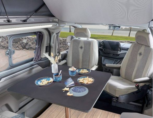 Pour son Kelsey nouvelle génération, Westfalia a également modifié l’ameublement tant dans la forme que dans les couleurs. Difficile en effet de ne pas souligner la ligne élégante du mobilier plus angulaire et avec une teinte biton du plus bel effet.