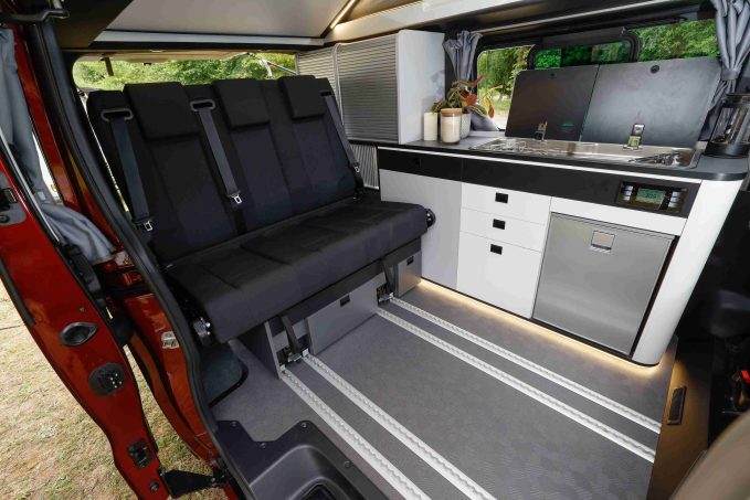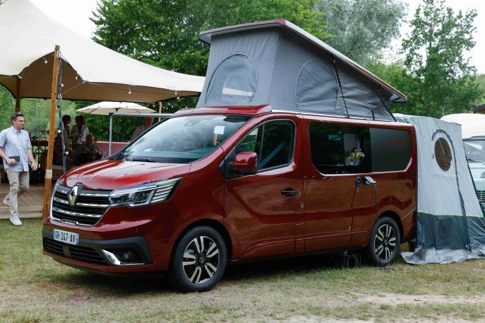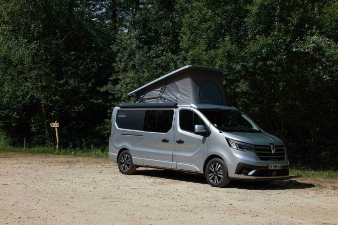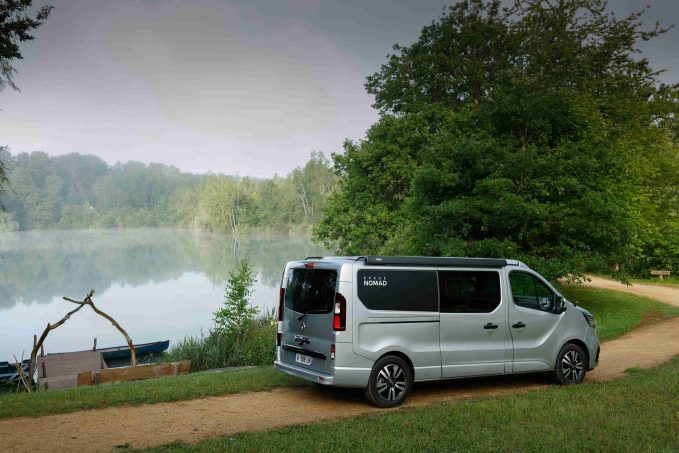 Depuis 3 ans, Renault a rejoint Volkswagen et Mercedes dans le club de plus en plus ouvert des constructeurs automobiles commercialisant des véhicules de loisirs dans leur réseau. C'est grâce à l’aide du groupe Pilote que la marque au losange a pu proposer son petit camping-car : un van à toit relevable, somme toute classique, avec une implantation éprouvée, type California. Le SpaceNomad « tout court » repose sur une banquette deux place fixe, transformable en couchage, et complété par un meuble courant contre la paroi gauche et incluant cuisine et rangement.