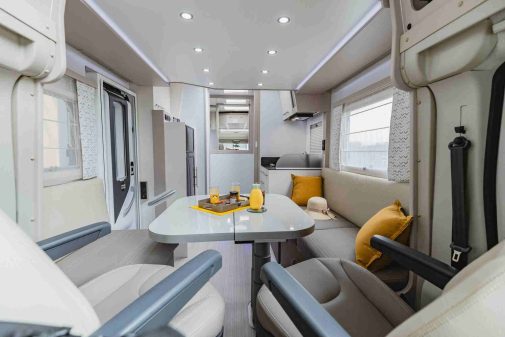 Satisfait du catalogue proposé jusqu’à présent, les concessionnaires Notin ont semble t’il influé sur le choix du constructeur français de ne pas faire évoluer son offre pour la saison 2025. Pour autant, des évolutions sont à souligner dans les différentes gammes présentes. C’est le cas par exemple des intégraux i-Progress sur Fiat Ducato. En effet, Notin a travaillé sur un inédit et ingénieux lit de cabine. Manipulable électriquement, ce couchage peut s’envisager en une ou deux places selon les besoins. En revanche, le sommier type peigne fait preuve d’inventivité puisqu’il s’étend vers l’avant du véhicule, au-dessus du tableau de bord. Une manière d’optimiser l’espace sans pour autant empiéter sur la partie salon. Il est donc totalement envisageable de profiter des assises de la dînette malgré la présence du couchage double. En matière d’implantations, cinq propositions restent au programme sur des tarifs compris entre 118 800 € et 136 500 €.
