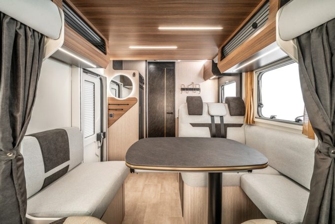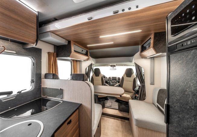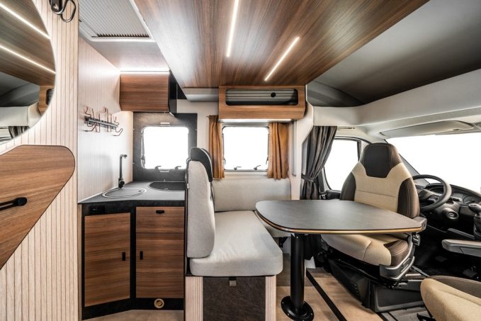 Mais cette gamme Sarus se distingue surtout en partie intérieure par un travail de design très intéressant mené dans la cellule. Rimor nous avait déjà surpris avec sa récente série Kilig qui marquait les esprits par son esprit coloré, elle réitère le coup par une ambiance dite scandinave affichant un aspect flatteur et contemporain. Les ingénieurs de la marque italienne se sont fortement inspirés des codes esthétiques de l’univers de la maison à l’image des décors de parois type « tasseaux », et un mobilier nervuré teinte bois du plus bel effet. Dès la montée à bord, les Sarus produisent indéniablement leur petit effet, et on ne met pas longtemps à se sentir bien.