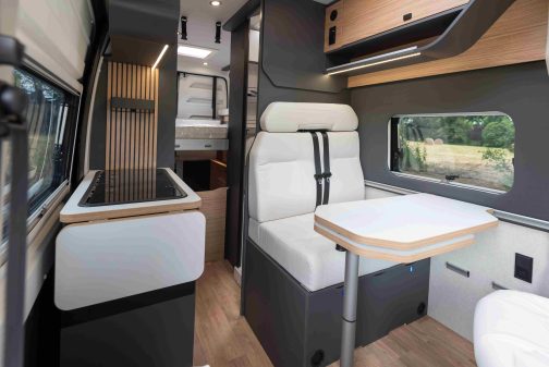 - Un couchage supplémentaire dans le salon est disponible dans les fourgons de l’offre Nomade