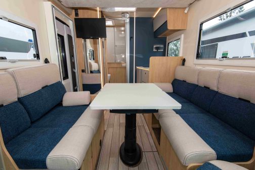 Dénommés Horon Fit, ils se distinguent avant tout par leurs dimensions, en étant 20 cm plus étroits et 10 cm plus bas que les profilés standards. Le tout sans rien sacrifier à la qualité des couchages, avec, en complément de l’implantation elle-même, la présence d’un lit de pavillon de série et/ou d’une transformation optionnelle de la dînette en lit.