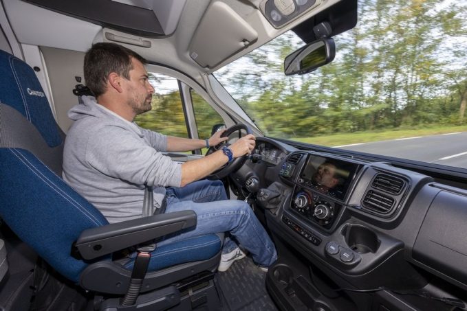 Dans les faits, le porteur reste le Fiat Ducato. C’est un prototype qui a été mis à notre disposition (ce qui explique qu’il s’agit d’un châssis 2024 non restylé) dont la motorisation thermique est le 140 ch à boîte manuelle. Mais la déclinaison 180 ch et boîte auto sont présentes au catalogue.
