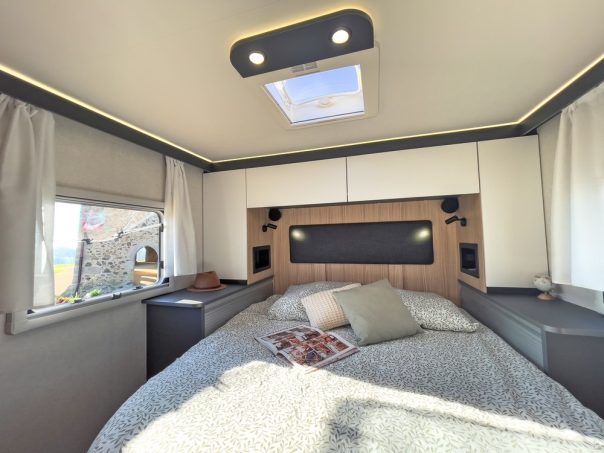 En profilé, deux implantations ont donc été retenus sur une longueur commune de 7,20 m. Il s'agit d'un véhicule avec lits jumeaux (P720 FGJ) et un modèle avec lit central (P720 FC). En dehors d'un couchage différent, ces deux véhicules partagent une implantation similaire avec un salon face/face en partie avant, une cuisine fonctionnelle avec frigo à compression, une salle d'eau avec zones distinctes entre douche indépendante et cabinet de toilette. Un lit de pavillon est également prévu de série sur ce modèle spécial. Les deux autres véhicules sont à retrouver dans la catégorie intégraux avec les G720 FC et G720 FGJ d'un gabarit de 7,25 m. Vous l'aurez compris, il s'agit de la déclinaison des implantations précédentes mais sur des modèles recarrossés. Lit central et lits jumeaux sont donc également de la partie. A bord de ces modèles en revanche, Pilote est resté sur l'ambiance Pyla, développée spécifiquement pour cette collection 2025 avec une atmosphère flatteuse et moderne.
