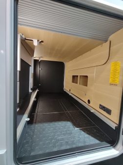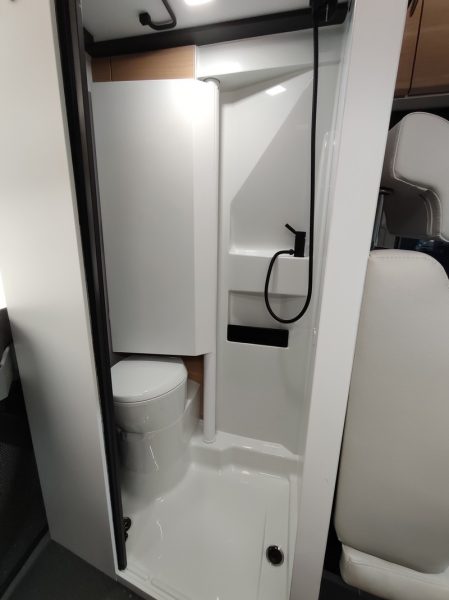 L'univers du fourgon n'est pas en reste. Adria a sélectionné le Twin Sports 640 SGX (meilleure vente des fourgons) pour incarner sa série anniversaire également. Ce modèle de 6,36 m adopte en chambre arrière un lit en pavillon permettant ainsi de profiter d'un grand volume de chargement. A noter que sur ce dernier, Adria a apporté une évolution au niveau de la paroi pivotante de la douche. Cette dernière passe désormais au-dessus du WC et permet ainsi de gagner davantage de profondeur.