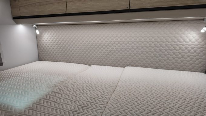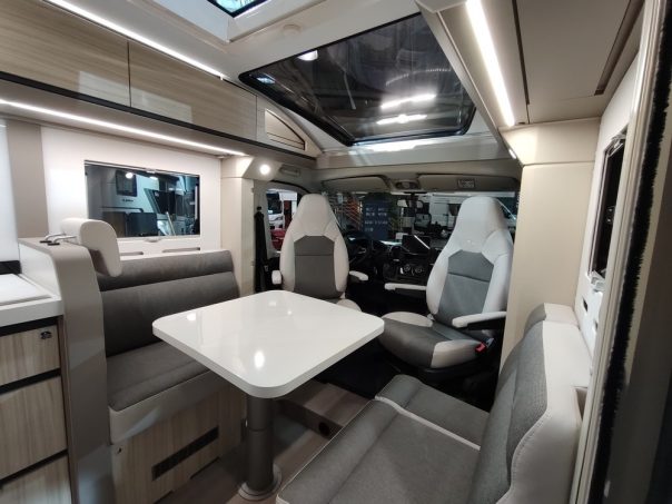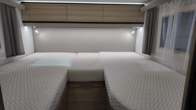 De l'aveu des responsables de la marque en France, ce profilé est ni plus ni moins que la meilleure vente du constructeur, toutes carrosseries confondues. Ce véhicule séduit par son gabarit de 6,99 m de longueur mais surtout par sa largeur réduite de cellule de 2,12 m. L'implantation fait la part belle à de magnifiques lits jumeaux. Pour ce modèle spéciale, Adria a modifié quelque peu l'ambiance en chambre avec une tête de lit capitonnée du plus bel effet. La salle d'eau optimise l'espace à bord avec une paroi pivotante.