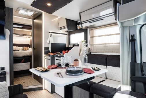Si les implantations sont connues donc, des modifications ont toutefois été apportées notamment sur le Yearling 81 qui intègrent en chambre des tables de nuit pivotantes. En salon, le constructeur a repensé le système des places routes sous les banquettes avec une mise en place plus simple et rapide. Les Yearling 73 et 81 sont commercialisés à 73 990 €, prix incluant les équipements du porteur cités précédemment, mais aussi la cabine grise Moondust Silver, les jantes 16", le store extérieur de 4,5 m, les radars de stationnement à l’avant, prise gaz et douchette extérieures ou encore un panneau solaire de 200W.
