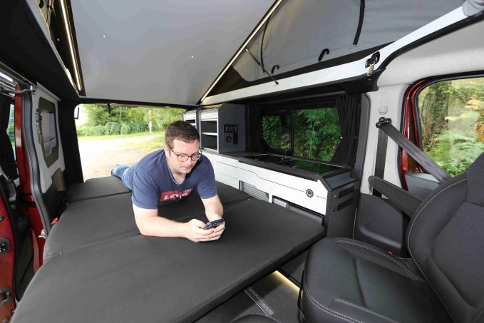 L’une des seules options disponibles sur le véhicule est un chauffe-eau Whale Expense fonctionnant au gaz ou à l’électricité. Il est proposé à 900 €. Par ailleurs, le van peut accueillir quatre personnes à l’étape grâce à ses deux couchages doubles. Il embarque des réservoirs de 80 L d’eau claire et de 40 L d’eau grise. Enfin, ce Trek 5+ édition de printemps est proposé sur le nouveau châssis Renault Trafic, avec la nouvelle motorisation euro 6E.