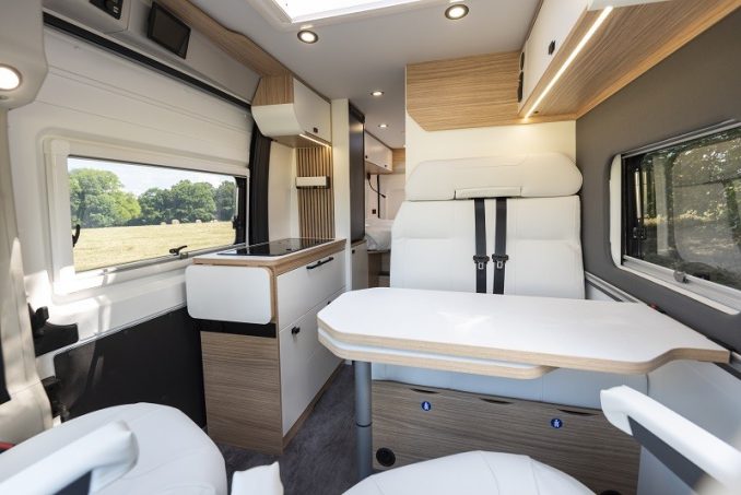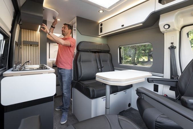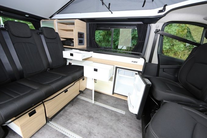 Si leur diffusion paraît quelque peu discrète, les ventes de vans à toit relevable semblent à la hauteur des espérances de Pilote. La marque propose quatre implantations avec des variantes : banquette 2 ou 3 places, fixe (BF) ou coulissante (BC), véhicule personnalisable ou tout équipé (Evidence)… Seul le CV545 sort du lot avec sa longueur de 5,48 m. Tous les Campervans ont bénéficié cette année de petites améliorations : réfrigérateur un peu plus volumineux mais surtout plus économes, des réservoirs d’eau propre et d’eaux usées de plus grande capacité , toile de toit relevable de meilleure qualité ou encore, et c’est sans doute le point le plus appréciable, une nouvelle banquette coulissante plus aisée à manipuler pour les versions BC. Le CV505BC est proposé depuis peu dans une série spéciale de printemps baptisée Sélection ajoutant la caméra de recul, un store banne, une panneau solaire et le pack Easy Link tandis que la carrosserie est habillée du très à la mode Gris Urban le tout sans augmentation de prix versus la version standard.