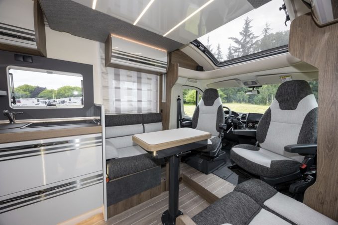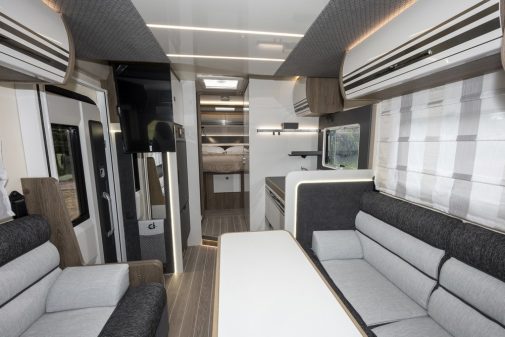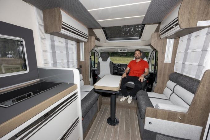 La salon est spacieux et peut accueillir aisément cinq personnes autour de la table. Enfin, la marque italienne permet à ses clients de choisir le porteur de leur profilé. Car celui-ci est également disponible en Ford Transit de 130 ch. Bref, ce véhicule se montre très polyvalent, que l’on soit plutôt gros dormeur, lecteur invétéré ou amateur de moments conviviaux à table.