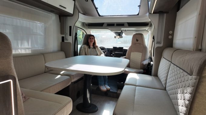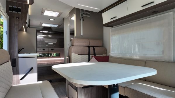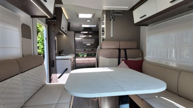 Le constructeur espagnol Benimar vient de lever le voile sur sa collection 2026. Si de nombreux changements au niveau du mobilier interviennent pour plus de clarté à bord, on retiendra surtout le lancement dans la série Tessoro d'un modèle inédit baptisé T425. Ce véhicule de 7,20 m de longueur, 2,30 m de largeur et 2,89 m de hauteur se positionne sur un secteur familial. En effet, les responsables de la marque revendique une transposition d'un agencement de la capucine Sport 324 Up. Pour être honnête, il faut plus parler d'inspiration car le salon est radicalement différent. En effet, le Tessoro 425 opte pour une grande dînette avec banquette en L, sofa et sièges pivotants du porteur. Ce coin repas peut se convertir (en option) en couchage double.