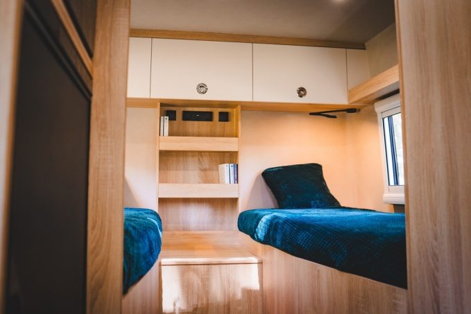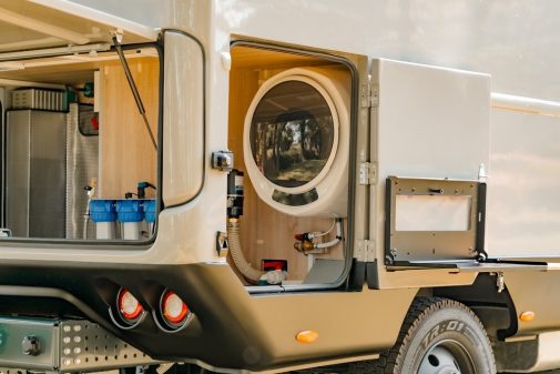 Il s'agit d'une cellule X-Cap montée sur un porteur Iveco Daily 4x4. Il répond à une homologation pour 4 personnes sur route. En revanche, à bord, ce modèle bénéficie de lits jumeaux sur soute garage. Ce véhicule hors-norme dispose également de tous les équipements nécessaires pour offrir une autonomie la plus importante possible tels qu'une installation complète Mastervolt, des panneaux solaire, un chauffage Truma sur carburant et une filtration d'eau Aquatec. A cela s'ajoutent également des élements digne de l'univers domestique comme un four micro-ondes, une machine à laver, un climatiseur ou une plaque à induction en cuisine.