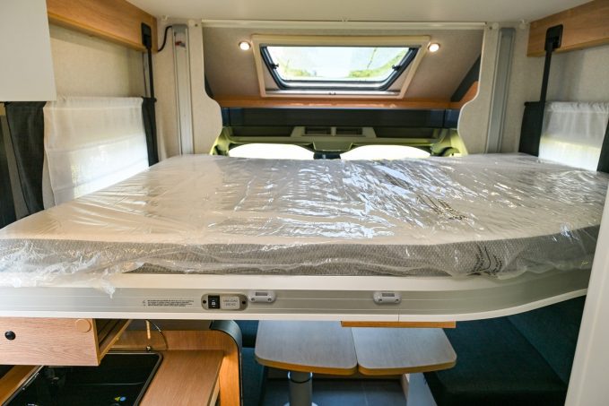 Sans compter que le Bavaria Qwest Q690GJ se démarque par sa soute, puisque celle-ci affiche une capacité de chargement de 2 830 L et une hauteur de 1,20 mètre, idéale pour transporter tout un tas d'objets, notamment des vélos, afin de gagner en autonomie de déplacement quand arrive l'étape, le soir, ou la visite, en journée. Autre nouveauté sur la base du Transit, que la rédaction de Camping-Car Magazine a déjà développer pour la marque Pilote, le Q630G présente pour sa part un plan intéressant sur seulement 6,30 mètres de long. Au programme : un lit transversal, un salon face-face, une cuisine optimisée à l'équipement intéressant, mais aussi et surtout un lit de pavillon électrique, plutôt rare dans ce type de véhicule.