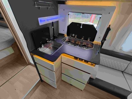 Pour ce millésime, les porteurs Ford disparaissent, tous les modèles sont sur châssis Stellantis. Bien qu’il y ait autant de modèles que dans la collection précédente, l’intégral de la gamme Famili Compact, CS660 et le profilé de la gamme Cozi, PS700, disparaissent. Ce dernier est remplacé par le PS740. Ce profilé de 7,40 mètres intègre des lits superposés arrière ainsi qu’une dînette supplémentaire juste à côté. Elle permet de créer un espace assis à l’écart, s’apparentant à une chambre. Celle-ci peut être dédiée aux enfants alors que les parents bénéficient d’une grande dînette avant avec un lit de pavillon au-dessus. Ce véhicule à l’implantation familiale comprend cinq couchages une grande penderie et une salle d’eau traversante. Notons que la gamme Cozi renouvelle sa face arrière avec des feux rouges allongés.