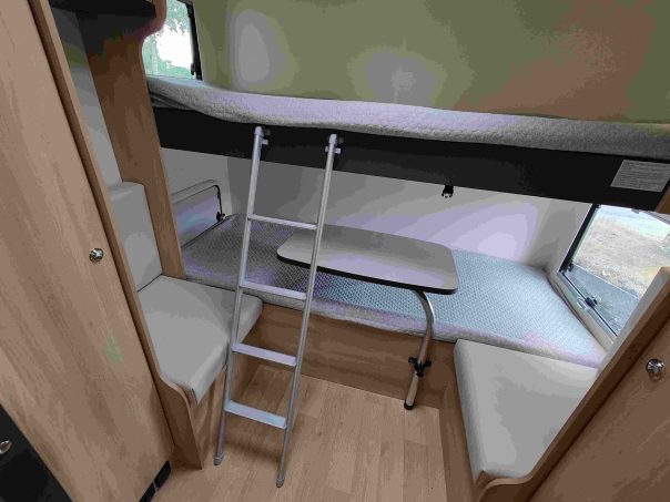 L’autre nouveauté, c’est l’intégral JC 740 de la gamme Famili. Il présente des lits jumeaux arrière, un couchage qui fait son grand retour dans la gamme de la marque. Ceux-ci sont réglables électriquement en hauteur. C’est une innovation d’Itineo unique sur le marché. Dédiée à une clientèle plus âgée, cette nouveauté permet aussi de moduler l’espace en soute.