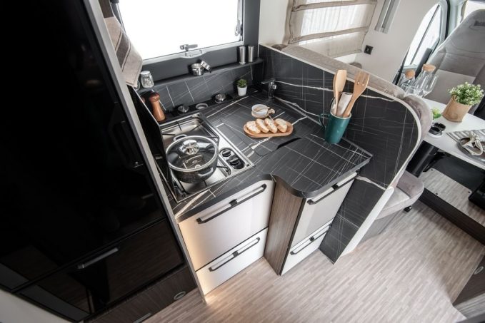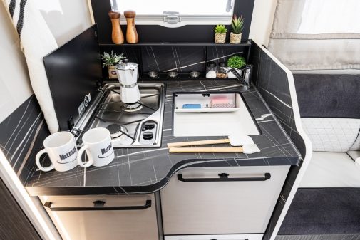 Commençons par les profilés avec la possibilité désormais d’opter pour le châssis Fiat Ducato 140 ch ou pour le Ford Transit 165 ch (grâce au pack à 1€). Ce choix est une grande révolution pour le constructeur italien, qui laisse clairement l’opportunité aux camping-caristes de s’appuyer sur le porteur transalpin ou américain, ce dernier offrant un avantage tarifaire non négligeable. Pour exemple, un Mc4 865 est commercialisé à 68 990 € avec le Transit, et 72 990 € avec le Ducato.