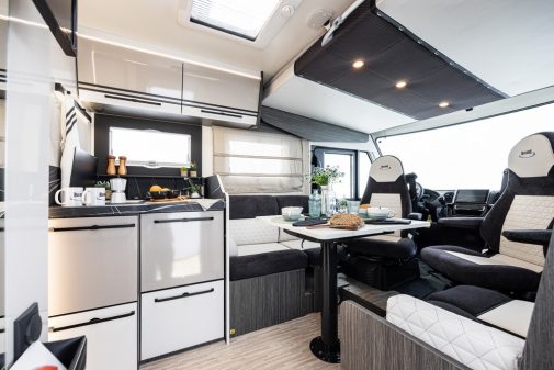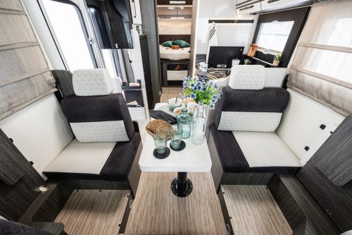 - les véhicules avec salon face/face adoptent une nouvelle sellerie Premium, avec des sièges Confort où le coussin se transforme simplement d'accoudoir à support pour la tête.