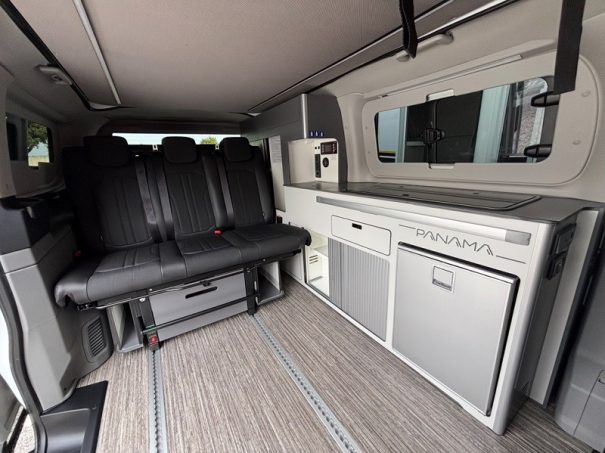 Pour développer cette série spéciale, Panama a fait appel à son modèle phare, le P10+, également disponible en version hybride. Un van bien connu basé sur le Ford Custom dans sa version standard (5,05 m de long) et proposant un aménagement assez convenu avec mobilier contre la paroi gauche et banquette trois places coulissante et transformable en couchage, le tout complété par un toit relevable avec lit pour deux. Sans oublier une isolation des parois et plancher.