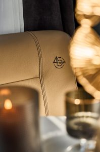 Notons également un marquage extérieur unique et un pack cadeau des plus appréciables, à l'image d'un étui en cuir pour carte grise, un porte clé, un plaid, deux serviettes de bains, quatre verres à vin, deux tasses à café, quatre sous bock en cuir, mais aussi un rafraichisseur de bouteilles. Les broderies intérieures ainsi que les portes de meubles à la finition blanche haute brillance sont d'ailleurs là pour donner encore plus d'agrément à cette collection 45ème anniversaire.