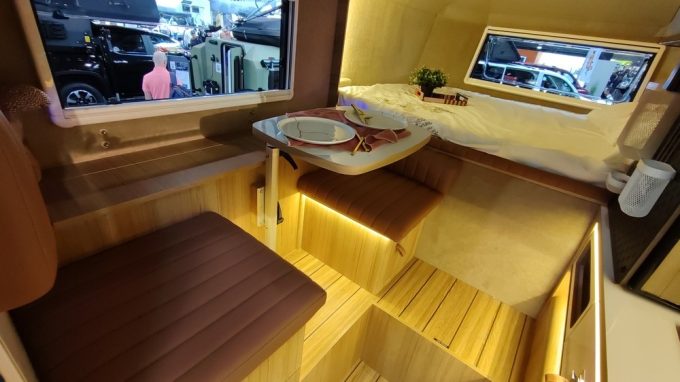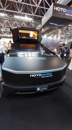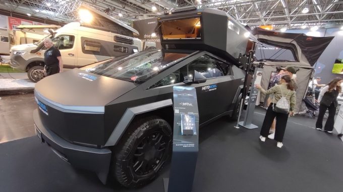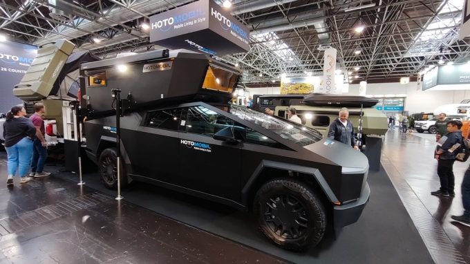 Si le Caravan Salon de Düsseldorf est le plus grand rendez-vous mondial de véhicules de loisirs, certains acteurs du marché savent s'y prendre pour ne pas passer inaperçu au milieu d'une offre de camping-cars impressionnantes. C'est le cas de la société turque HotoMobil spécialiste de l'aménagement de cellules amovibles qui a, sur son stand, dévoilé des modèles greffés à des pick-up originaux comme le Dodge Ram, mais surtout sur un Tesla CyberTruck. Un véhicule américain qui ne passe pas inaperçu tant sur le gabarit imposant que sur son aspect angulaire. D'ailleurs, HotoMobil a conservé une certaine ligne stricte pour sa cellule baptisée pour l'occasion Cyberglad.