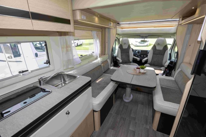 Dans le détail, les occupants du P660 disposeront donc d’un vaste salon face-face dans lequel cinq à six personnes s’installeront confortablement, profitant des banquettes latérales et vis-à-vis et des sièges de cabine montés sur embase pivotante.