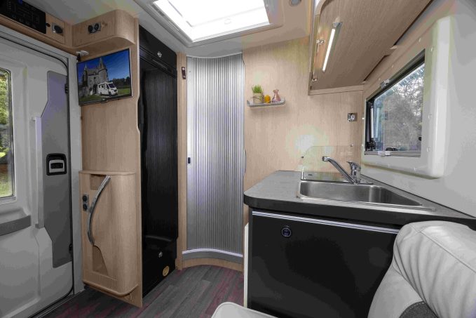 Concernant l’autonomie en eau, le P660 est équipé d’un réservoir de 120 litres pour l’eau propre et d’une cuve de récupération des eaux usées de 115 l. Chauffage et eau chaude sont délivrés par un combiné Truma C4.