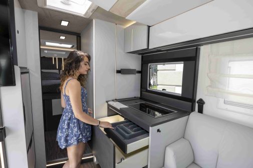 Cette année, Mobilvetta s’est inspiré du Fluideen, le génial prototype exposé en 2024 au SVDL, pour réaliser les importantes modifications sur les profilés et les intégraux de la gamme Kea. Le design a notamment été modernisé et la technologie a été améliorée de manière, surtout, à augmenter l’autonomie en énergie et en eau de tous les modèles Kea. L’accent a aussi été mis sur l’habitabilité en travaillant sur l’ergonomie et le confort des différents postes.