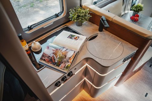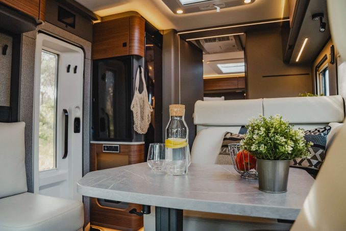 Le nouveau Hymer Classe-B ModernComfort marie à la perfection design et confort. Chaque détail a été minutieusement pensé pour répondre aux attentes des voyageurs qui recherchent une expérience de conduite et un niveau de finition d’exception.