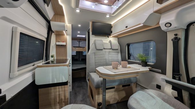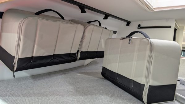 Pour autant, la marque n’a pas tardé à rendre cette nouveauté encore plus attrayante avec une version Fit commercialisée à un prix de base attractif de 65 900 €, incluant 5 100 € d’options. Ainsi, ce fourgon bénéficie dans la dotation d'origine Fit de la peinture métallisée Gris Artense, du pack Bumper (pare-choc peint, skid plate noire, phares antibrouillard), des jantes alliage 16″, du volant en simili cuir, aérateurs gris aluminium, sellerie “Shadow”, du marchepied escamotable électrique de 700 mm, du Start Pack (deux batteries AGM 95 Ah, panneau solaire extra-plat, système multimédia 7″ et caméra de recul), d’un Truma Combi D4 ou encore de trois bagages amovibles supplémentaires puisque ce fourgon opte non pas pour des placards de pavillon mais pour des éléments type valises.