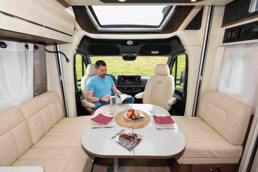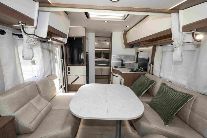 Présentée en avant-première l’an passé dans nos colonnes, la gamme Elister est constituée de profilés sur Mercedes Sprinter. Fleurette renouant avec le porteur à l’Etoile après l’avoir boudé pendant plusieurs saisons. Deux modèles de 7,30 m sont disponibles. L’un est équipé d’un lit central (73 LMF), le second de lits jumeaux (73 LJF).