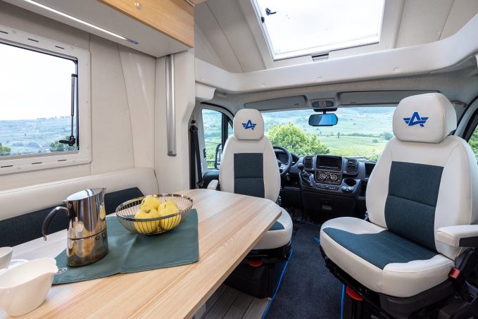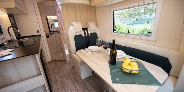 Les cellules Atlantis sont bridées sur le châssis surbaissé Al-Ko à voie élargie et roues arrière semi-indépendantes. Le catalogue compte quatre modèles : le Carbon 595 donc, mais aussi le Compact 595, le Special 645 et le Deluxe 695. Chaque nombre fait référence à la longueur en centimètres, du camping-car. A bord, la personnalisation est reine tant du côté de l’implantation que de l’ambiance.