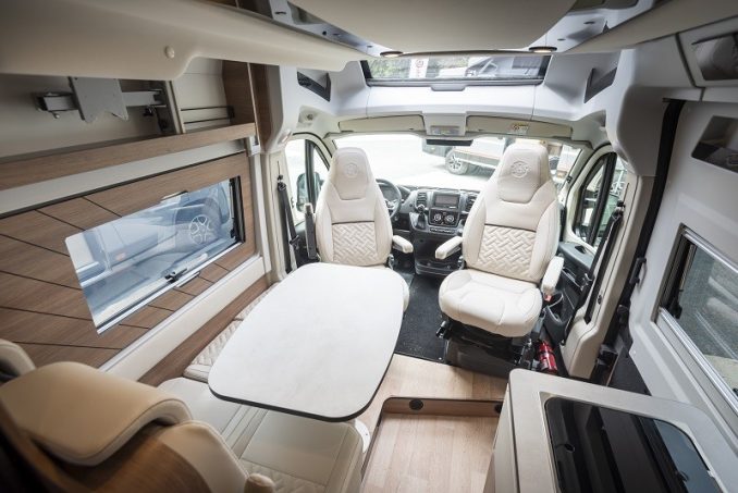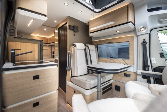 L’ensemble des fourgons profitent de nouvelles ambiances (Nordic et Eclipse, remplaçant Natural et Serenity) et des selleries en tissu inédites (Origin et Sonora). Tous les modèles, sauf Family Van, sont éligibles à la finition haute Saphir (skyroof, jantes alliage, bouclier avant peint, couchage d’appoint…) qui, cette année, s’enrichit du frein de stationnement électrique, du renfort de suspension arrière pneumatique, d’un panneau solaire de 150 W, d’une prise gaz extérieure et du chauffage sur carburant (Truma C4D).