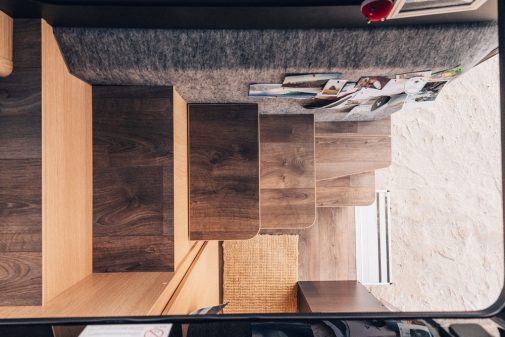 Après la version Greentrek de son 4x4, la marque allemande Sunlight a décidé de faire parler d'elle une fois de plus avec son dernier-né, le fourgon Vanlife 540V. Appartenant à la série Cliff, ce modèle se distingue pourtant très nettement des autres véhicules par un esprit radicalement différent. En effet, comme son appellation le laisse à penser, Sunlight a souhaité proposer une implantation industrialisée mais dans un esprit de "véhicules réalisés soi-même (Do it yourself)". En effet, ce fourgon de 5,41 m conserve la cloison entre le poste de conduite et l'habitacle. Une manière de dissocier les deux éléments et surtout de profiter d'une paroi pour loger... un véritable escalier.