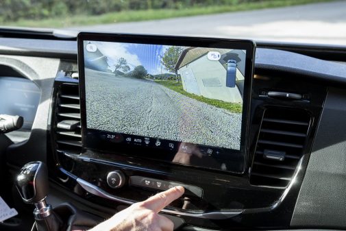 Ce profilé est donc commercialisé à partir de 62 990 € avec un joli niveau d'équipement et notamment le pack Safety Ford et le Pack Connect, tous les deux intégrés de série. Ce dernier comprend le combiné multimédia Ford avec écran large et tactile sur laquelle se rapporte la caméra de recul.