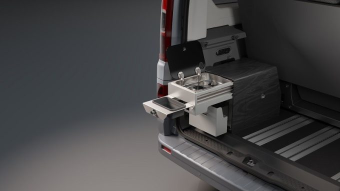 Derrière son allure de fourgon classique, le Trafic Escapade cache un aménagement pensé pour le voyage, mais surtout pour l’escapade de fin de semaine avec sa banquette coulissante et convertible en lit deux places, sa table modulable, ses rangements intégrés et même un petit meuble de cuisine situé à l’arrière gauche, dans le coffre. Celui-ci intègre un mini réchaud, un bac faisant office d’évier (sans robinetterie) et un tiroir de rangement. Un ensemble permettant une homologation VASP. En quelques secondes, il passe du mode conduite au mode nuit, pour profiter pleinement de vos escapades en bord de mer, à la montagne ou en pleine nature. En revanche, s’il propose jusqu’à sept places routes, il ne pourra accueillir qu’un couple de dormeurs puisqu’il fait l’impasse sur le toit relevable, même en option. Une configuration simple qui n’est pas sans rappeler le Trafic Evado du début des années 2000, mais qui se dispensait de kitchenette.