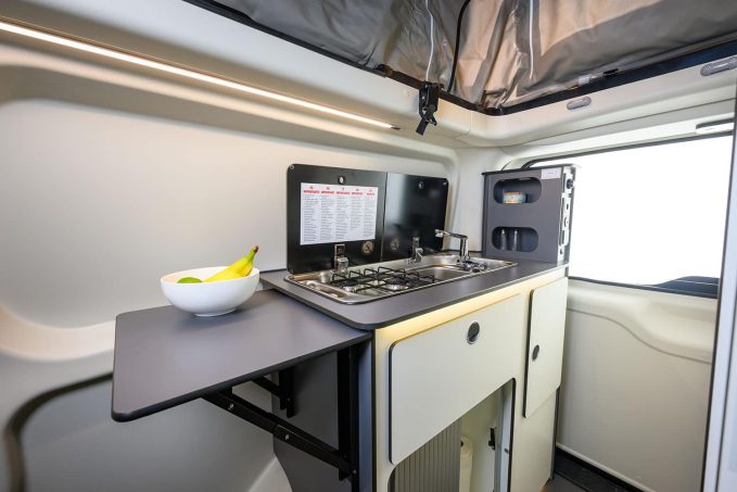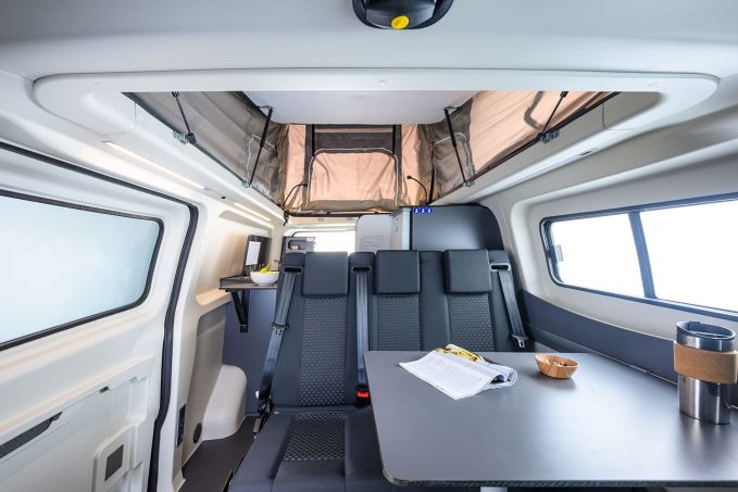 Alors que la seconde prend ses aises sur la partie arrière, avec la présence d'une véritable salle d'eau avec cabinet de toilette séparé, se démarquant par un espace somme toute convenable compte tenu du gabarit du véhicule. Conçu pour être utilisé en quatre place carte grise, il ne comporte en revanche que trois places pour la nuit, qu'on obtient grâce à un lit sous toit relevable et à la transformation de la dinette, en bas. Entre autonomie et confort, notamment grâce à un chauffage 2 kW, l'Auto Camper XL est considéré comme "le chouchou de la planète van", selon la marque de Brantôme. Disponible à partir de 63 990 €.
