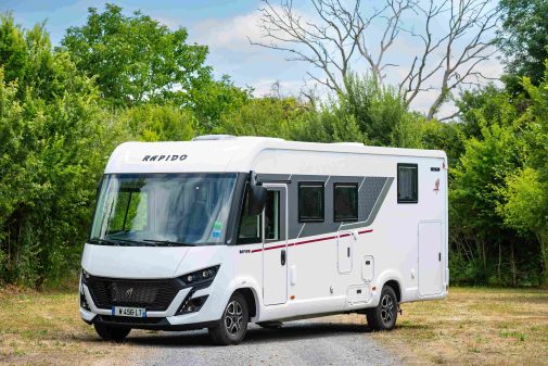 Le gros du changement chez Rapido concerne les intégraux des séries 8F et 80 dF. Dès le premier regard, difficile de ne pas remarquer leur nouveau look, marqué par une face avant plus anguleuse et affirmée, qui renforce leur caractère dynamique. Le constructeur annonce également l’utilisation d’un pare-brise panoramique inspiré des modèles Mercedes Distinction, offrant une visibilité vers l’avant améliorée de 60 cm.