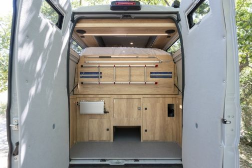 De prime abord, ce couchage semble destiné à des enfants. Mais pour l’avoir testé, nous pouvons confirmer que deux adultes peuvent aussi s’y allonger, profitant d’un confort presque similaire à celui des lits jumeaux situés à l’arrière. Ces derniers sont également constitués de sommiers à assiettes sur lesquels reposent un matelas de 80 cm de large et 192 cm de long pour celui logé sur le flanc droit et 186 cm pour le lit de gauche. Entre les deux, un élément coulissant où l’on posera deux blocs de mousse pour transformer ces lits jumeaux en un couchage version king size.