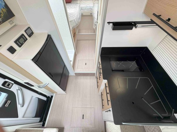 - Une option intéressante : celle du free gaz. Plus aucune bonbonne dans le véhicule mais une puissante batterie Lithium qui alimente le frigo à compression et la plaque de cuisson à induction.